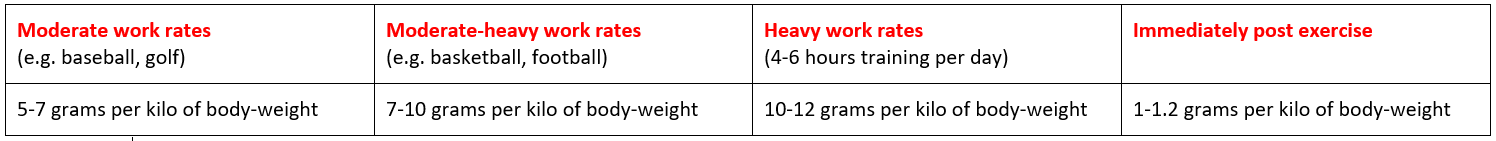 The following table provides a summary of recommended CHO intake ranges: